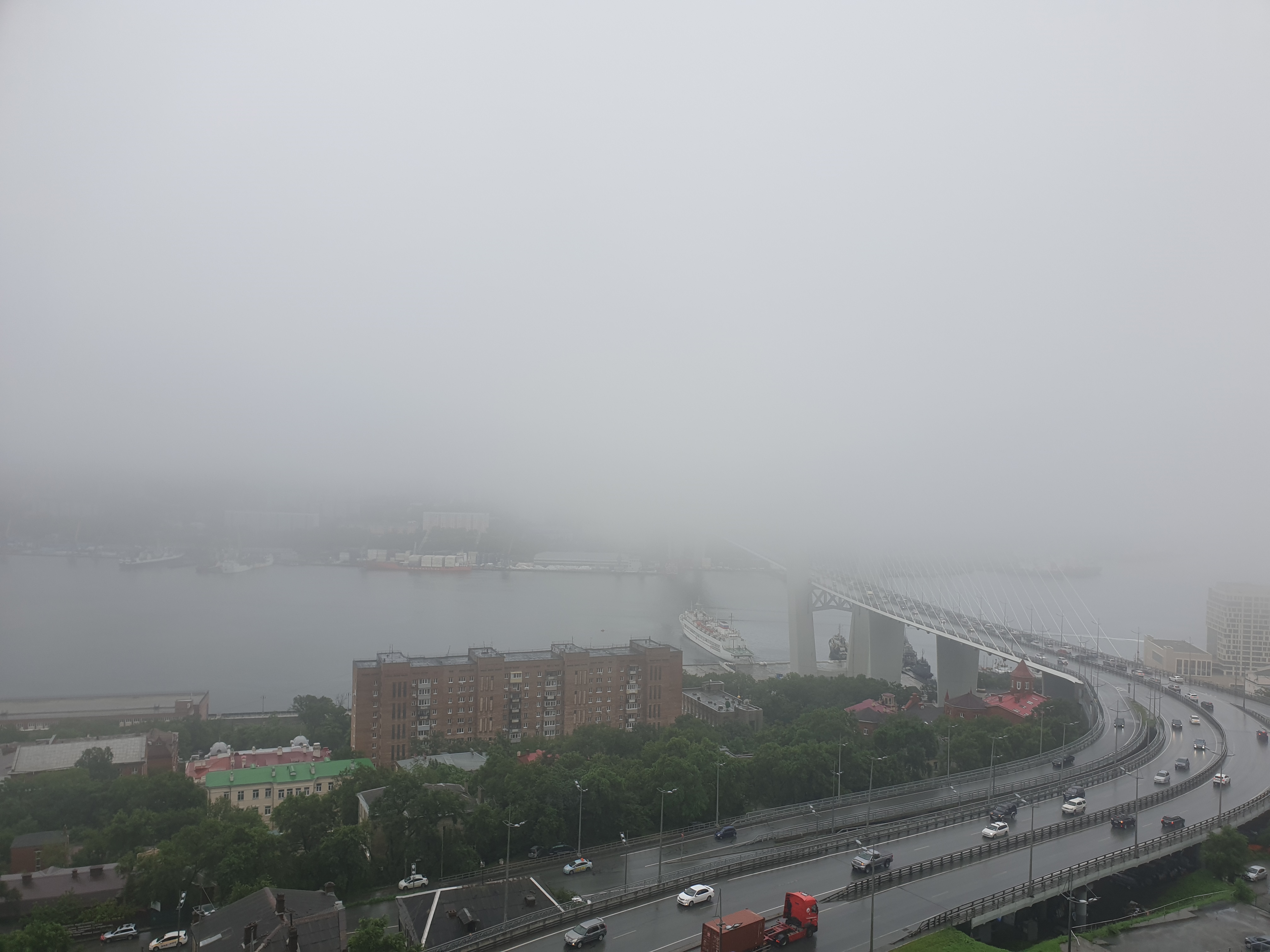 독수리 전망대에서 바라본 블라디보스토크 시내 전경, 까마득한 안개로 거의 보이지가 않는다. 이날 운전하다가 사고 날 뻔