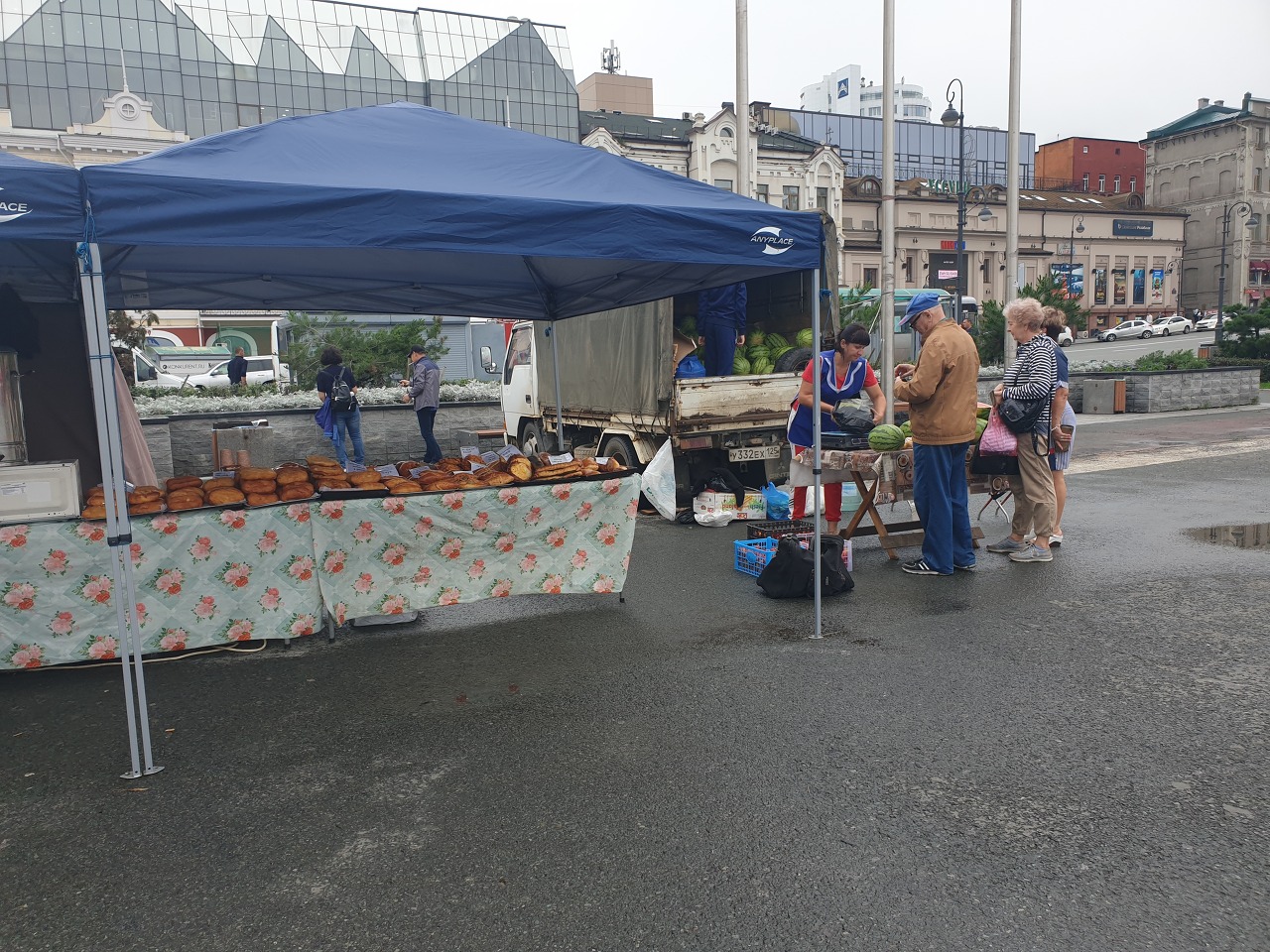 블라시 보스토크 혁명광장은 아르바트 거리, 블라디보스토크 역 부근에 있다. 블라디보스토크를 여행하면 혁명광장을 여러 번 지나가게 되는데 아마 가장 중심지역에 있기 때문이다. 기념품 가게 등 인근에 많은 상점이 있고 주말에는 반짝 주말장터가 열리는데 방문한 이날은 토요일로 옷을 파는 노점 등이 들어서 있다.